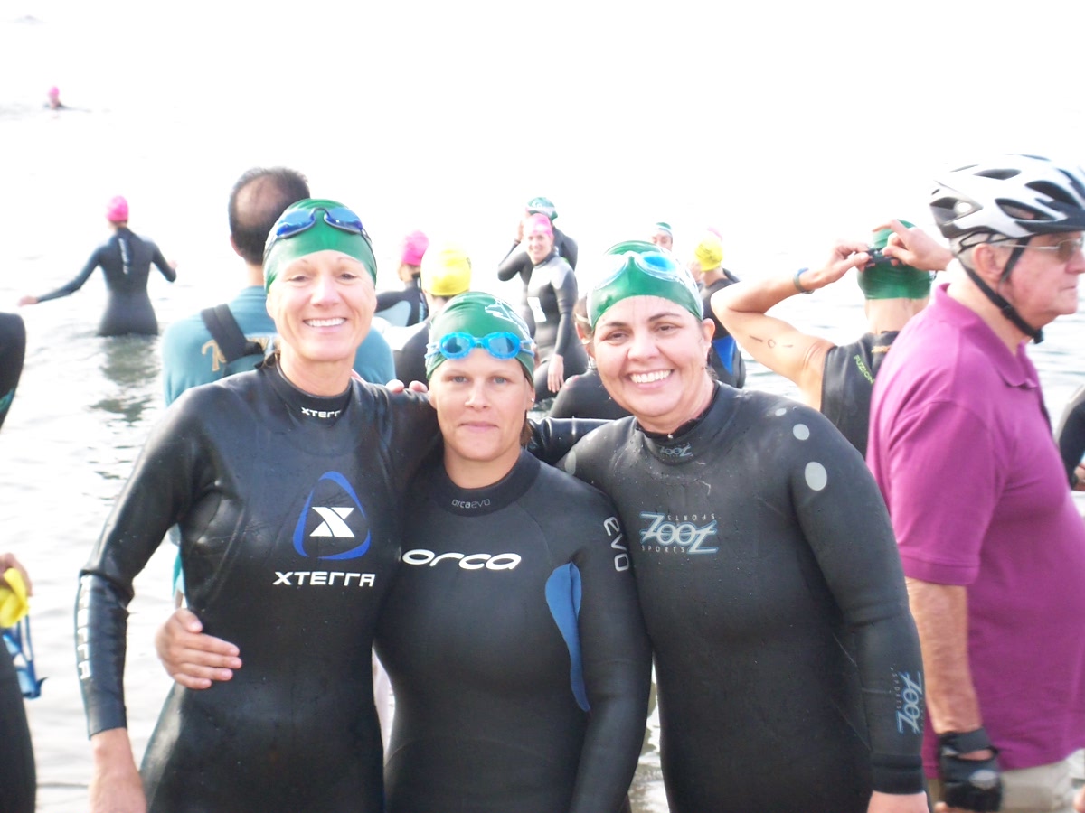 Up at 4. Out the door at 5 to meet and carpool with friends. Flat out, PB and J and banana and some dry cereal. Once there, set up transition, watched the first waves go and swam a bit to warm up. Did some high knees, chatted with others. Nervous stomach, as usual.