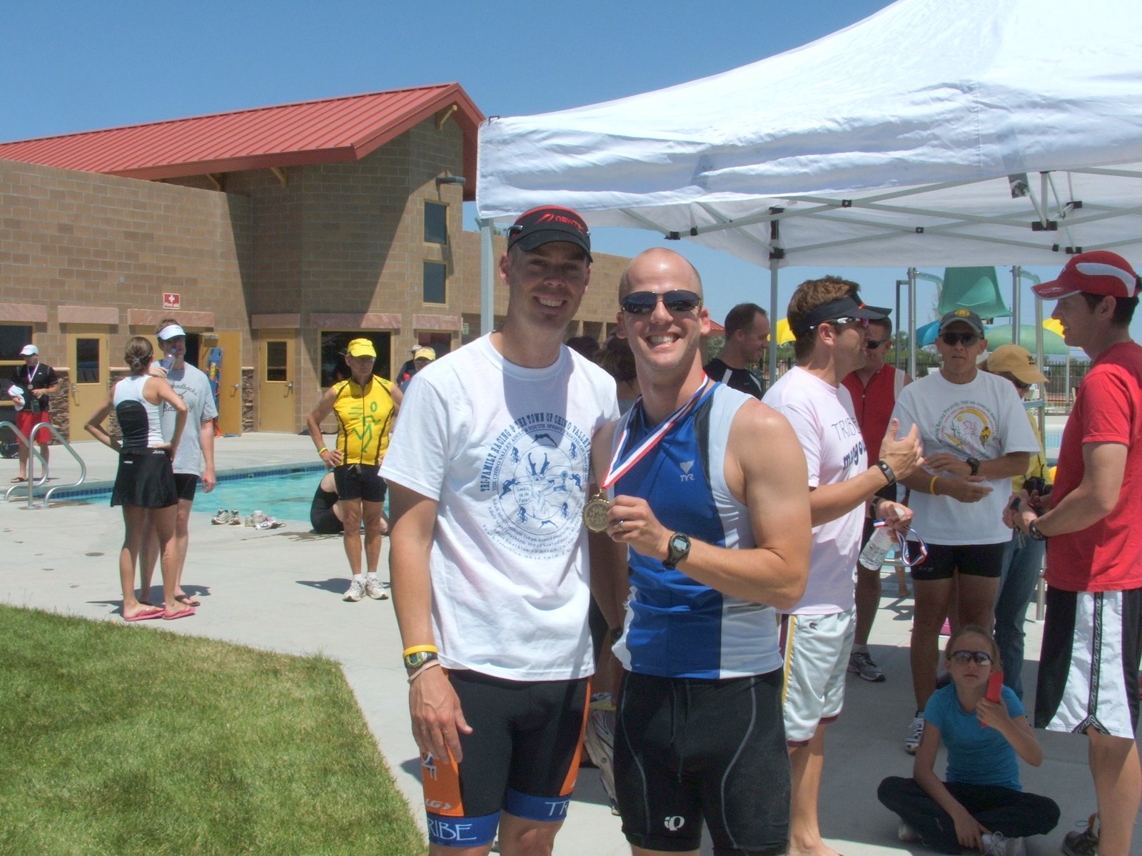 Comments: I was a hot mess on the run. Immediately off the bike my stomach tightened up. It wasn't GI cramps like I've had, it was higher, and it sucked. I had to walk for about a minute. I really wanted this AG win, so I ran through it. It got worse. I hit the first water station and had a big cup, which tasted amazing. I did the same on the second station. It was getting hot at this point, and I think 5 people passed me on the run, including Spencer. What would you do differently?: I need to drink more WATER on the bike, for sure. ![]() Post race