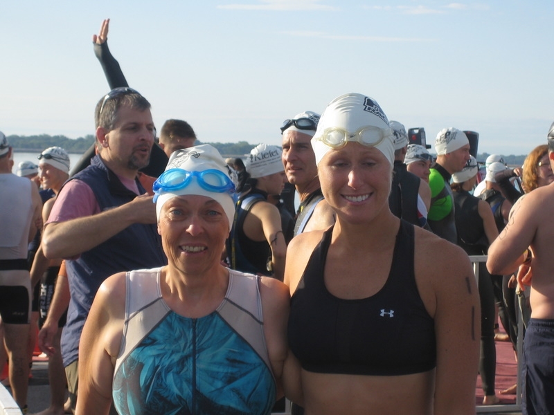 Woke up, had an apple loaf w/pb and a banana. Met Amy (amymengle) and her husband, Andy in the hotel lobby. We rode over to the race site together. Set up T2, got bodymarked and a chip and headed over to T1