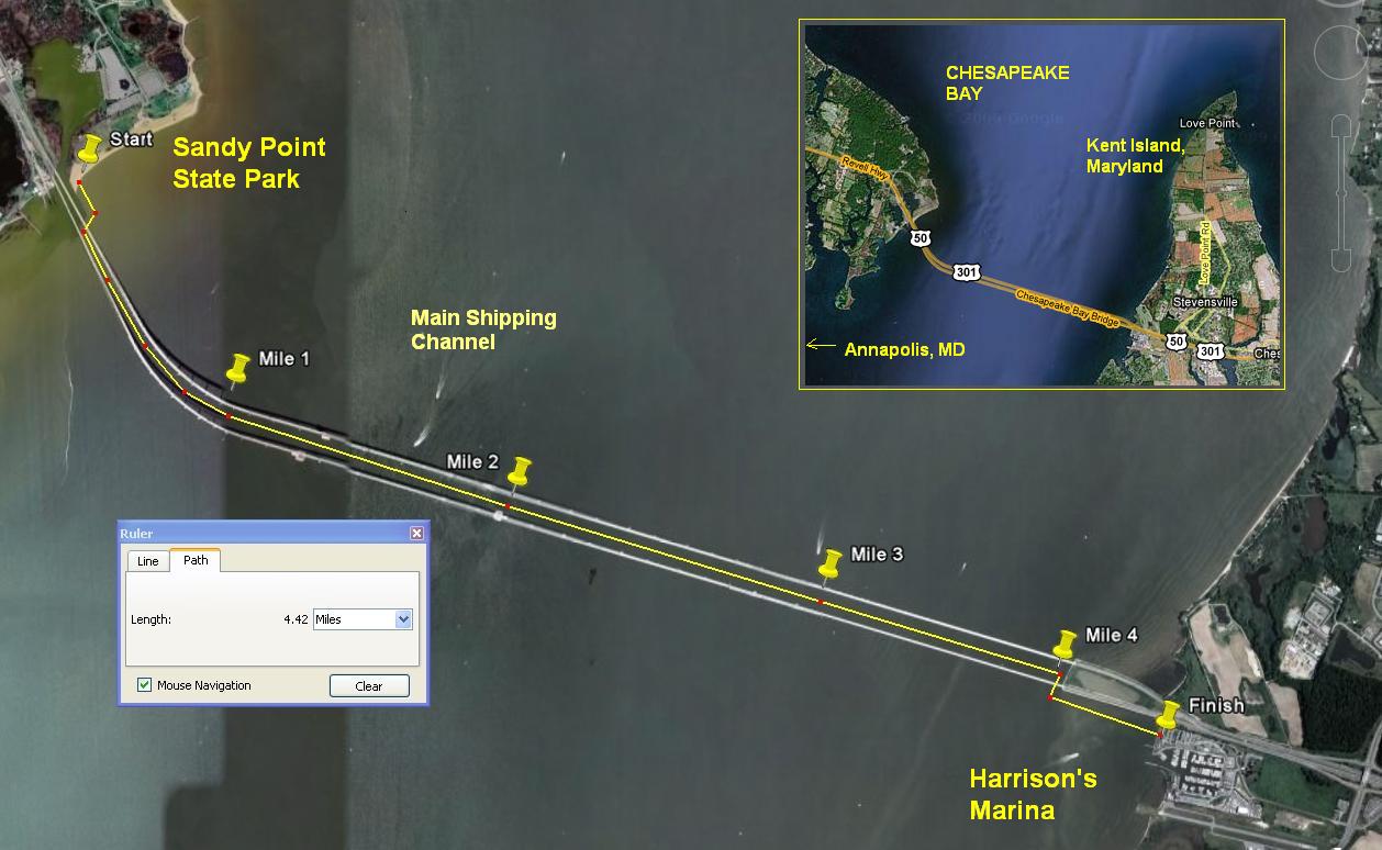 Comments: Pre-race briefing told us that we'd face a diminishing flood (S->N) current of 0.5kt in the 1st half of the race, though balanced by a NNE wind. Second half of the race we were told to expect an increasing ebb (N->S) current, somewhat amplified by the NNE winds/waves. So my tactical strategy was to get dead center between the 2 spans and work to hold that position. This is a departure from my typical strategy, which is to hug close to the north span of the bridge for the 1st half of the race and gradually move to the south span for the second half. Tactics worked out, we headed to the starting line. I lined up for the start on the far right, close to the stone jetty that we have to clear before we can turn right to get under the bridge spans. This gives the shortest line to the buoys that mark the turn. At the start I got in front of most of my wave and had clear water almost immediately. Under the bridge I lined up in the center, drafted of a couple people for a while, and found my rhythm. Mile 1 is typically the easiest of the swim and my tendency is to go out hard. In the past this left me too tired to effectively battle currents that hit during Miles 2 and 3, so my plan was to start out conservatively. I forced myself into an easy, steady, long stroke and relaxed into the swim. Once into the water, waves from the North rolled in, they were long and consistent rollers, not choppy, and at first they made a long body position hard to hold. Once I adjusted to the waves' frequency and prevented over-rolling they weren't much of a problem. After passing the 1 mile mark the chop increased and the waves became more irregular. The S->N push of the current caused me to make several adjustments to my line and I started sighting on the south span supports. However, the current was never enough of a problem to wear me out and I had little trouble holding my course. The Mile 2 buoy was dead center of the course and I literally swim into it, hitting it with my hand as I went by. Brief stop at the banana boat, ate a gel pack, and attacked the 3rd mile. I expected Mile 3 to be the hardest, but having started slowly and finding only weak currents I had energy to spend, so I went into a heads down hard pace and tried to make up some time. Somewhere in this mile the current started pushing me southward and I had to make corrections to stay in my center position. Occasional chop came and went but I felt like I was swimming in the pool for a while. To counter the N-S push I started sighting on the North Span bridge supports and I set the goal to pass the Mile 3 marker to the left (North) - and had no problem countering the current to do so. A quick stop at the 2nd boat for some water and on to mile 4. Mile 4 just seems forever; you can see the end of the bridge clearly but it seems like it gets farther away the more you swim toward it. The water was mildly choppy and gently pushing southward, concentrating all the swimmers into a line right along the south span's support columns. I actually had more kicks, hits, and bumps in this mile than in the start. I also had more drafting opportunities, which I took, leap frogging from one swimmer to another. Finally we passed Mile 4, turned right and got out from under the bridge. The last part of the swim is the 0.4 miles straight into the finish line. I fell into a nice long, hard pace, sighting every 12 breaths (36 strokes) and taking advantage of the smooth water to finish strong. I swam until my hands hit the bottom then walked the last few feet to the timing mats and was done. What would you do differently?: Not much. If I had known beforehand that the currents/wave/chop were more mild than in years past I would have gone out harder in Miles 1 and 2. And I would have remembered to secure the silly pull strap on my wetsuit, which kept getting in my way the entire swim. ![]() Post race