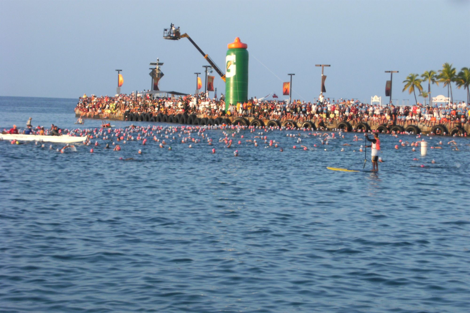 Ate a banana while getting ready. Had my ipod but listened to it for about 5 minutes because there was just so much going on to occupy and entertain my mind so I didn't really need it! Headed over to the water around 6:30am, and it took about 15 minutes to get about 100m because of all the athletes making their way over at the same time.