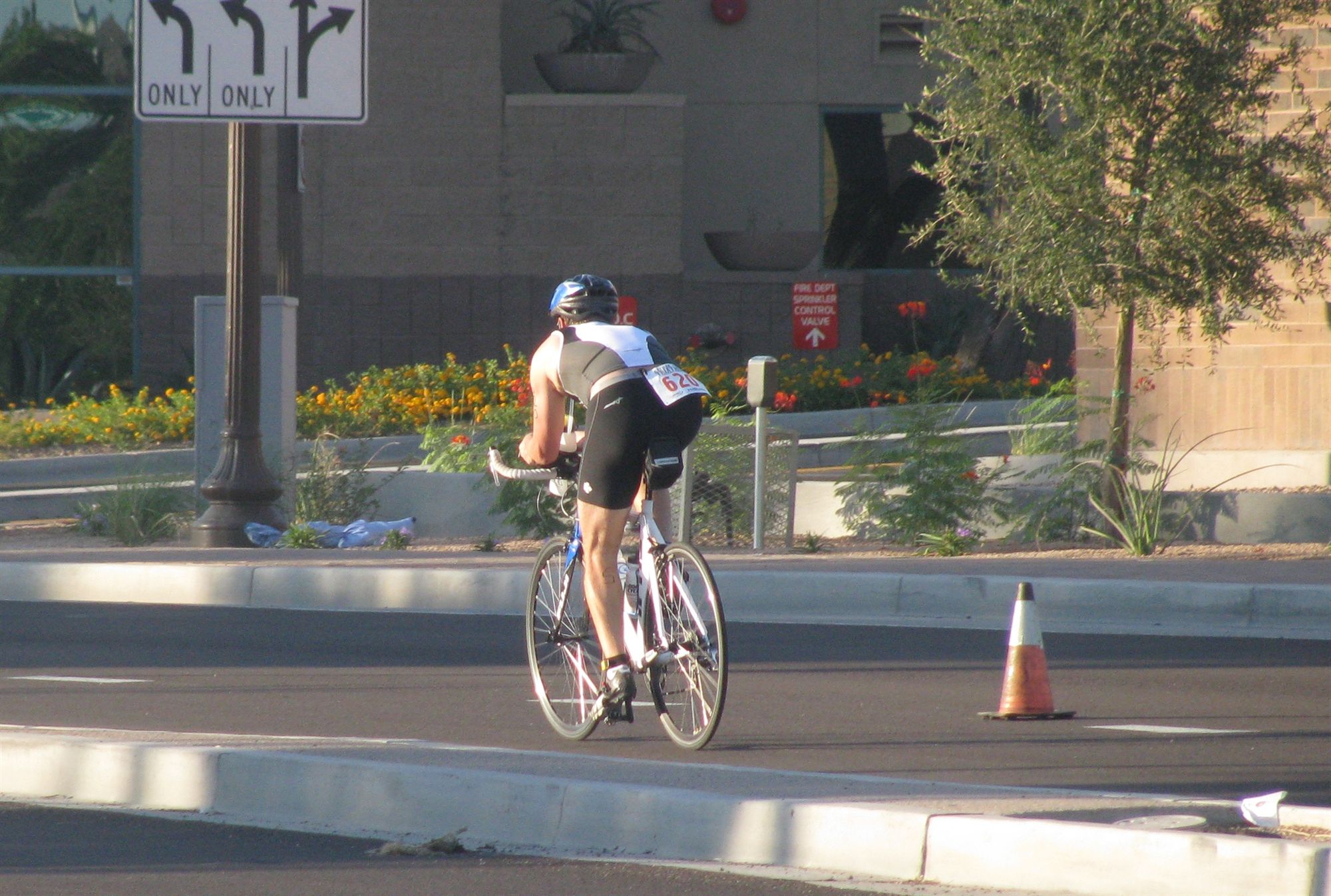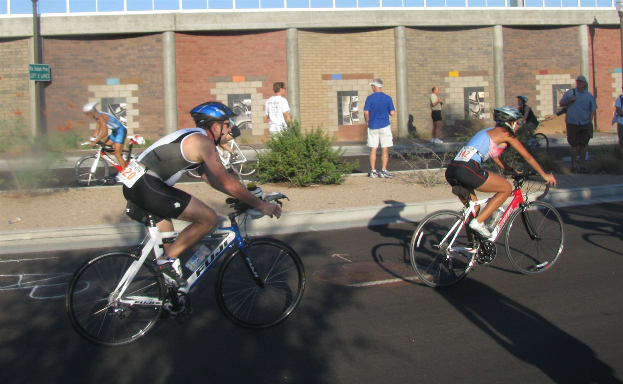 Comments: Being such a crappy swimmer, I end up at the BOP in my wave and then I have to deal with a much more crowded bike course than I would if I had gotten out of the water faster. West of TTL it wasn't too crowded, but when I got back to the Mill/Rio Salado intersection, it started getting crowded and having to pass quite a few people. Closer to the turn-around point, but got even worse and some people were riding side-by-side, making it impossible to pass. After the turn around, I finally decided to make a few 'on your left' calls and pass a few of those people and get into some less crowded area. Kept going back and forth with #85 and #142 on the bike on Rio Salado, Scottsdale Rd and also along Mill and back. Got a little crowded at the entrance to the parking lot before the dismount line and ended up slowing down quite a bit early. Clean dismount into T2. What would you do differently?: Swim faster! Get on the bike course faster and hopefully a less crowded bike course. Overall though, I rode well with 19+ MPH so not too bad. Some head winds when riding east, but it was tolerable.  Transition 2