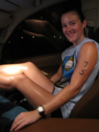 Not really much of one. Was stopped immediately by the race staff for my timing chips. So you want me to bend over and let all the blood rush to my head after I just got done sprinting? I told the lady she was going to have to do it or I was going to pass out. LOL