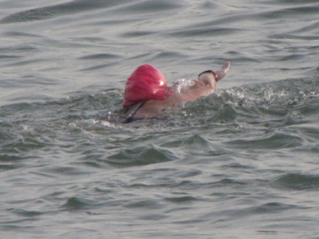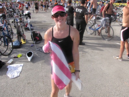 Stayed at the same hotel as last time in Coral Gables. Had a big lunch and small dinner and snack before bed. Didn't sleep at all (like usual) and woke up at 4am to prepare. Doused myself in bug spray to avoid what happened last time. When we arrived at the race site, they were still setting up and they wouldn't let me in the transition area until I got marked and put my chips on... but they were taking so long to get fully set up that they finally just let me in. No family/friends allowed in transition area this time. We got there wayyyy early, so I just kind of chilled out in the car and listened to music until it was time to get in line for the port-o-potties for one last bathroom break.... which were more disgusting than usual in my opinion. Then it was time to head to swim start and more waiting around... the worst part of the race for me because my nerves (not to mention my heart rate) are sky high before the race even starts!!!