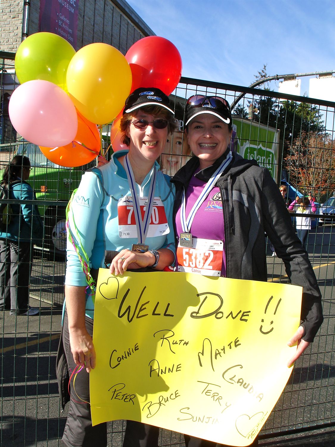 Warm down: Took me 20 minutes to get out of the chute. Grabbed a banana on the way out. Stretched out a bit, waited for friends to come in ... showered and went out for traditional Half Marathon Race Day pancakes. What limited your ability to perform faster: My blasted knee. Event comments: This is my fifth Half, and my fourth Royal Victoria Half. It's a lovely course, very friendly, and easy to run. Fabulous. Maybe next year I'll try the Full. Training for triathlons this summer made this race so easy. I had tons left in the tank and if that knee hadn't gone, I'd have been about 1:57 I think. I improved my time 22 minutes over last year, and moved from the last 100 of my age group to the top 100 of my age group, and I'm OLDER! Yay me. Last year's pace was 6:41; this year's was 5:47 including the walking I did in the last two km. I'm pretty happy with it, overall. Last updated: 2009-06-06 12:00 AM