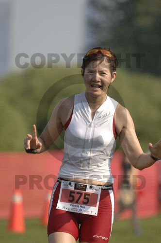 Comments: On the 2nd loop, instead of continuing onto the 3rd loop, I stayed to the right and went towards the finish area. When I realized I went the wrong way, I veered across the grass, attempted to manoeuvre my way around the spectators and ended up falling off my bike! Had to get up, clip back, wait for traffic to clear before getting up to speed. This is the same stupid mistake I made 2yrs ago. You'd think I should know the course by now! I probably lost a min or so, but surprisingly I still ended up with the 2nd fastest women bike split! The aero helmet and wheel set up must have helped, but the race saddle that I put on yesterday was quite uncomfortable. ![]() Transition 2
