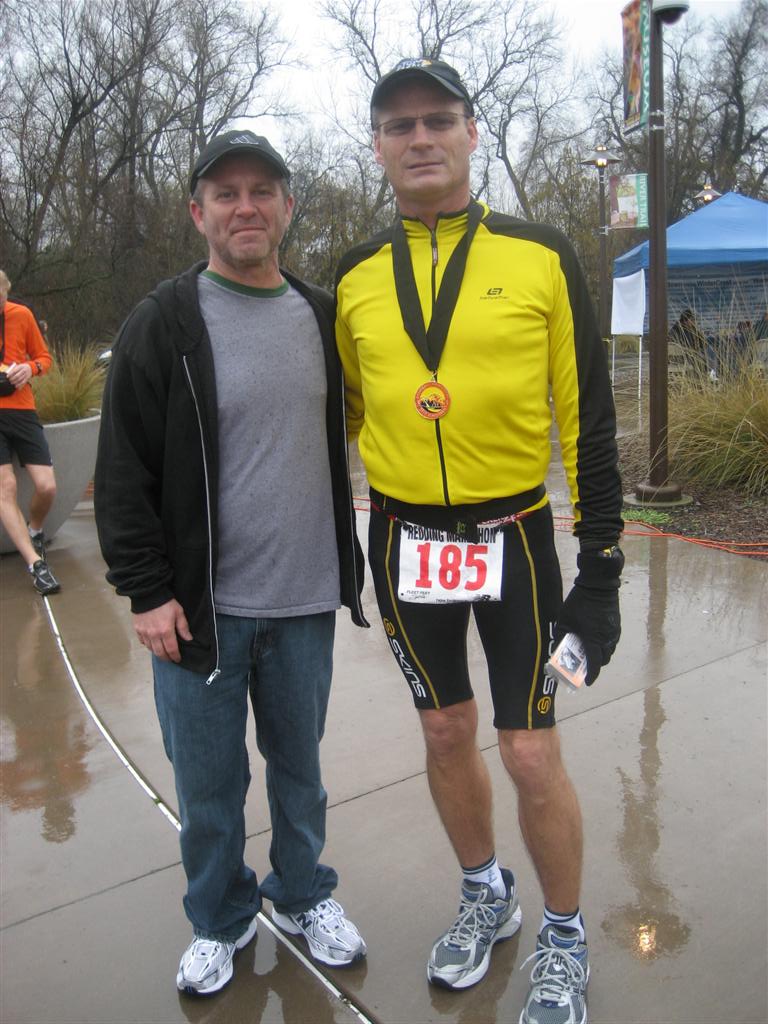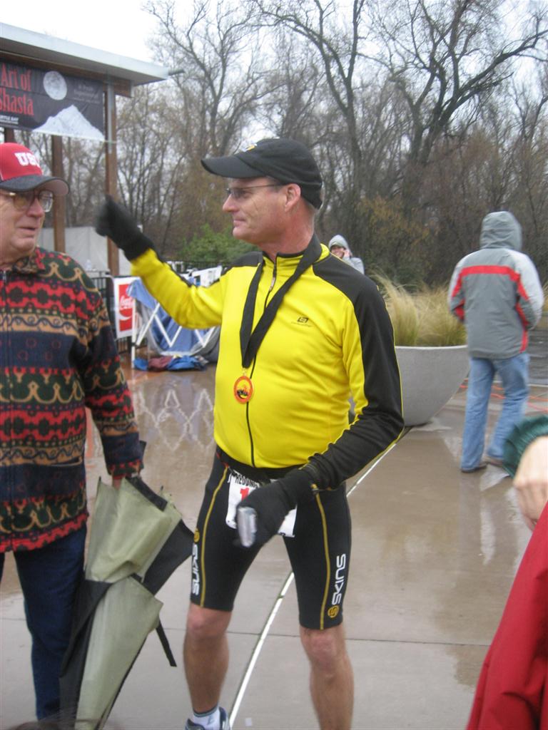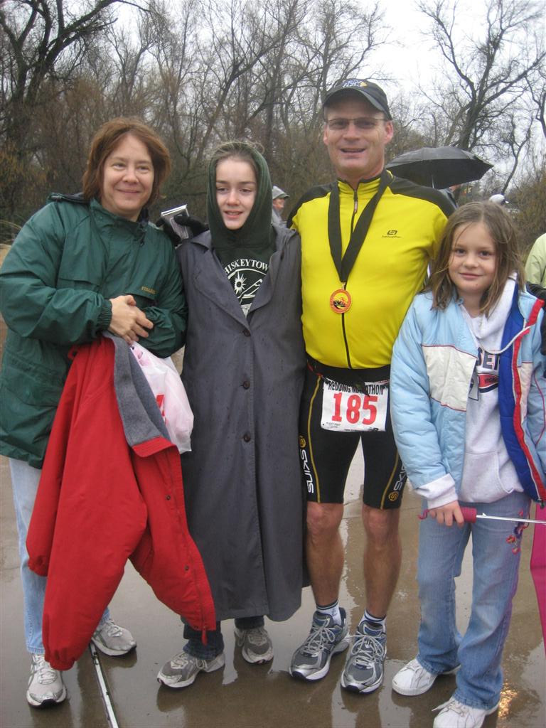 Warm down: It was raining so I got in the car,drove home climbed into the tub. What limited your ability to perform faster: Lack of training...plain and simple. Event comments: The race started at 8:00am, it was raining and about 42F. The field was a mix of relay racers and regular 26.2 racers like myself. As I mentioned in the BT forum, the first three miles were downhill and paved and I wanted to keep my speed to 8:15 per mile. I ended up doing 7:30 the first mile just because I was caught up in the flurry of the event and people passing me like I was stopped. I regained my composure and slowed down to 8:30, then 8:45 and then finally settled into 9:00 minute miles. By then we were running on a muddy fire road with small potholes filled with water. I slipped on some larger rocks and my right foot went into a hole and my shoe was instantly filled with muddy water. Things were going fine, I felt good, but noticed I was still getting passed and I was not passing anyone. I ignored it and then settled into my final target pace of 9:06 per mile. After about mile seven, I noticed some pain in my small toes on my right foot (the one that went into the water earlier). As I approached mile nine, which was when we had some substantial climbing, noticed that I could no longer manage 9:06 miles and drifted into 9:35’s and finally 10:00s. By the time I hit mile ten, I felt the slight nagging feeling that I might not make the full 26.2. So I slowed down again drifting between 10:30’s and 10:50’s. At 13.1 I was pretty sure I could make it at the current pace but I was running far slower than I had planned. My hands were so cold I could not get my jell packs open, so I was forced to stop at the water aid stations and ask them to get them open which they did happily. From mile 20 to the end was what everyone explained as the halfway point in terms of pain and suffering, I concur with that assertion. As I approached the last four miles, I thought I could pick up the pace and shave off a few minutes, but just couldn’t muster the will or energy. When I caught a glimpse of the finish line, I had a brief emotional moment but was able to run thru it without anyone noticing. The last fifty yards were the best part of the race as my family, friends and complete strangers cheered me on and I knew that I did not have to run anymore. I finally crossed 26.2 at 4:34 (34 minutes slower (+12.5%) than planned) and was sore, tired, very cold and wet to the bone. My family and friends treated me like a hero; it was a terrific feeling of accomplishment. I finished 80th in a finishing field of 165 and 7th in 14 in my age group 50~55. After some rational thought, I have decided that middle of the pack was not terrible result for someone that has never run 26.2, has only run 13.1 one time and only trains fifty miles per month. A plan to finish in sub four hours with my training was probably not realistic even in good conditions. When I got home, I inspected my body for damage and found that I had some black toenails on my right foot. I am not sure what happened, but I will surely lose those nails. No blisters or other problems to speak of. Most of my pain is located from just above my knees spreading up my thighs to my hamstrings. Thankfully, I did not suffer from knee, hip or side stitch pain. I ate a burrito, had a quick bath and shower and a few hours later we went to a good friend’s house for dinner and beers. It is nice to have great friends to share time with. In retrospect, when and if I intend to run more Marathons, I will need to spend much more time running and run much father each session. The gradual onset and steady increase in pain and suffering of running that far in those conditions was something I will be thinking about for a while. I would like to thank BellinghamSpence a BT member that sent me several informative inspires, Baowolf who is also a BT (I think he finished 13th in 3:19) member that gave me great course specific advice. Also, Wes at the “Bike Shop”, Darin at Fleet Feet, and my good friends John Rooney with his family and Larry and Deanna Davis that stood in the rain right next to my wife, children and father as I finished the race . And last but not least, I appreciate all the great advice from BT members. Last updated: 2009-08-15 12:00 AM