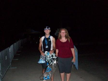 Comments: I actually felt great getting off the bike, my legs came up to speed right away. I saw my mom, sister, and aunt so that was a nice pick me up to start with. First few miles I was just cruising along at 8:45-9 min/mi pace, keeping heartrate in the high 140s/low 150s. Had to stop at portapotty around mile 1.5 for a longish bathroom break. I was still drinking a decent amount (1 cup per aid station in addition to my bottle), but apparently it still wasn't enough. I tried to take in a few hammer gels in the first half from my flask, but it wasn't tasting too good. On the first return to Cedar Point on the causeway I was still feeling strong. I stopped at special needs at the halfway point and grabbed a banana, pretzels, and another bottle, still feeeling good. First half was 1:57 by my watch, so I though I could do maybe a 4:05-4:10 marathon. At mile 15, it was like someone threw a switch. My heartrate climbed 10-15 bpm for the same pace, had a headache, and I felt very dizzy and sick to my stomach. I recognized this as dehydration, but I've never had it happen like this where there was no recognizable warning signs. My arms were very salty so maybe it was electrolyte deficiency. I immediatlely tried to just run walk. I should have stopped at an aid station and drank until I felt better. At mile 17 I was having trouble walking straight, so I stopped running altogether and stopped at the next aid station. I took in 30 oz. of water, filled my bottle, and started walking again. I promised myself I wouldn't risk my life for this, so I walked until I felt better. Had to stop at 5 more aid stations for more water and long bathroom breaks for my upset stomach, but still did not have to pee. I seriously thought at mile 21 I might have to DNF, I was really stumbling around and thought I was going to pass out. They had some salt pills at the aid station, so I took 4 and just waited there for a while. Eventually my stomach settled and the dizziness went down a little and I started walking again. Mile 24 I felt well enough to run/walk again, and did that into the finish. On that causeway, during the walk portions, I was pretty devastated by my failure in this race. It wasn't really a good feeling to finish like this, but I ran the last half mile into the park and tried to smile at the finish. What would you do differently?: Hydrated better and figure out something that works for me running nutrition-wise. ![]() Post race
