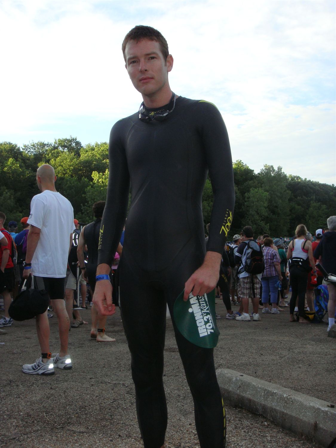 Nothing much but some walking here and there to set up the transition areas, putting on the wetsuit, and trying to relax.