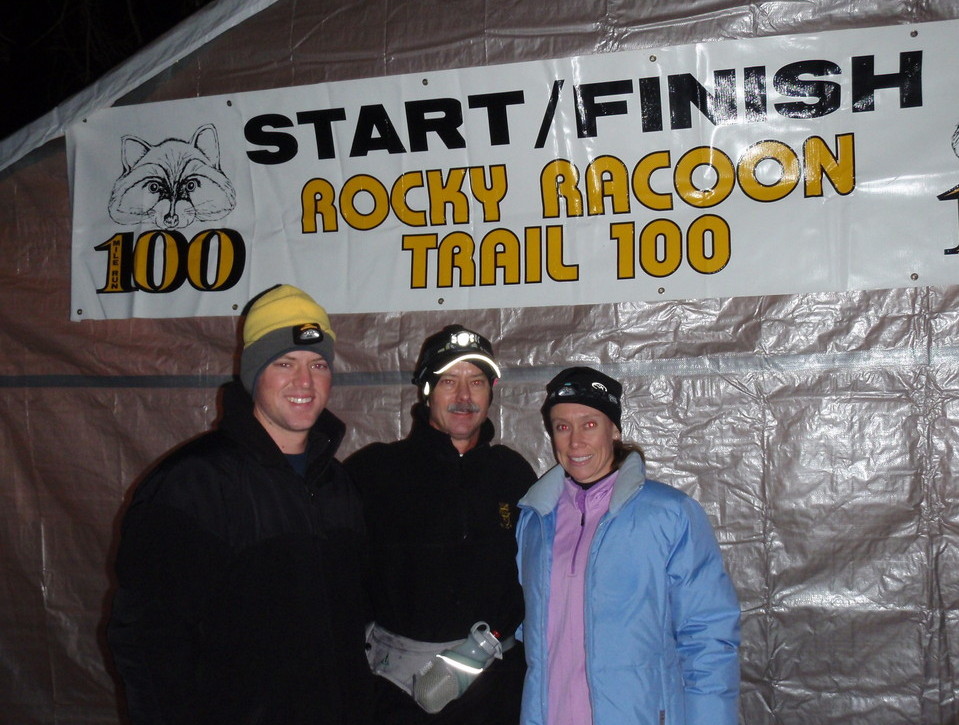 Warm down: None; as soon as I stopped I started getting very cold. Timothy pulled the truck up and I pulled myself into the seat. We got back to camp just before dawn and crashed in the tents for some rest. As tired as I was; I could hardly sleep. After a couple hours, I called my wife to tell her about the DNF and she told me about her elbow. What limited your ability to perform faster: See paragraphs above. Do NOT underestimate this distance. It is tough even at a slow pace. Little things become big things. If something goes wrong, it's probably going to go very wrong. If it bothers you in 13.1 or 26.2 or 50 miles, it's REALLY going to bother you in 80 or 100. Going from a 50-miler to a 100-miler is 2 times the distance, but it's 4 times harder. The curve is a sharp parabola; not linear. Another example of how little things add up. If you go the full 100 miles, you'll pass through aid stations 24 times. Stopping for 2-3 minutes at each one to get food and fluids adds up to over an hour of race time that you're not moving forward. Someone who's serious about this would do well to join a trail running club and get some good advice in their head and training runs in their legs. For the record it took 2-3 days of recovery before I was sleeping and eating properly again. This distance does a total whack job on your body. Event comments: This is a very well run race. This is my second time here and I cannot say enough good things about the aid station staffs and RD. They are all experienced trail runners and really know how to take care of the athletes. The fact that this race draws world-class runners is a testament to the quality of the organization and its reputation. Edited later to add: 1. Wife's elbow update. No surgery required. There was a chipped bone. A motion control brace for 4-5 weeks and PT later. 2. Pics. #1 Timothy, me, & Karen at the finish, 5:45 am Sunday morning. #2 Typical raw ankle. You can't see the little blisters, but they're there. Almost 2 weeks later as I type this, the skin is peeling just like a sunburn. Last updated: 2009-12-03 12:00 AM