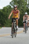 Comments: Didn't have my own bike. Borrowed Bob's bike. Put on bike shorts in between the shoes and the shirt. Don't have clip shoes either so I wore my running shoes which I, washed off my feet, dried them off, put on socks, put on shoes, tied the shoes. Put on my shirt with bib number on it, cleaned off my sunglasses, put helmet on, sunglasses on and then dismounted bike from rack. I know this transition could have been faster. I just don't like things on the bottom of my feet and wanted to be comfortable. What would you do differently?: Maybe learn how to do transitions faster while still being comfortable ![]() Bike
