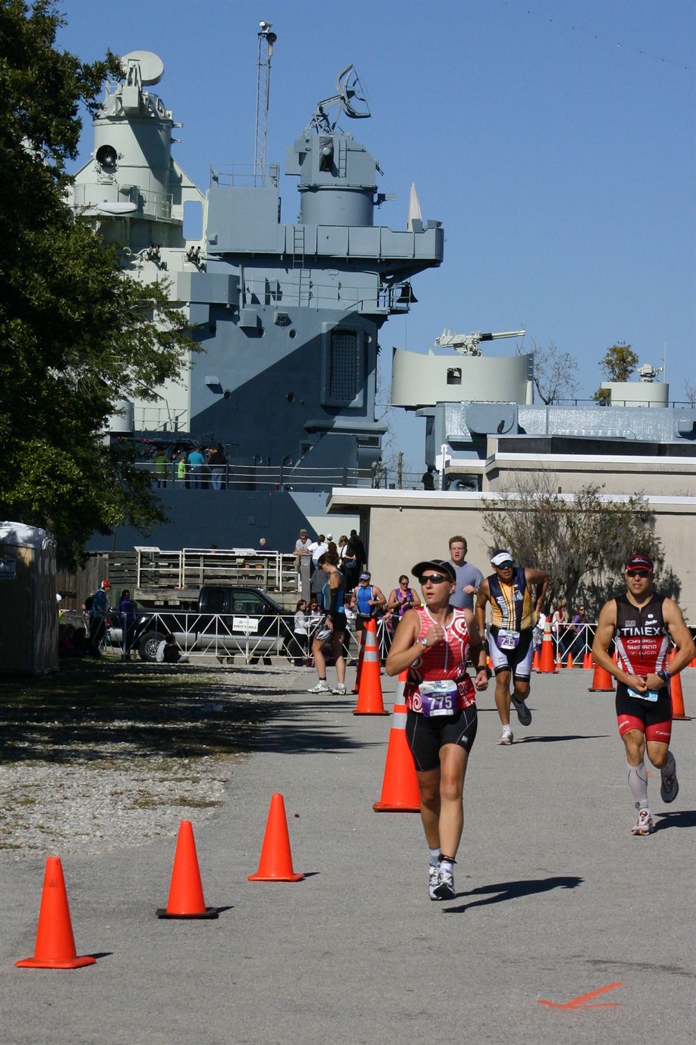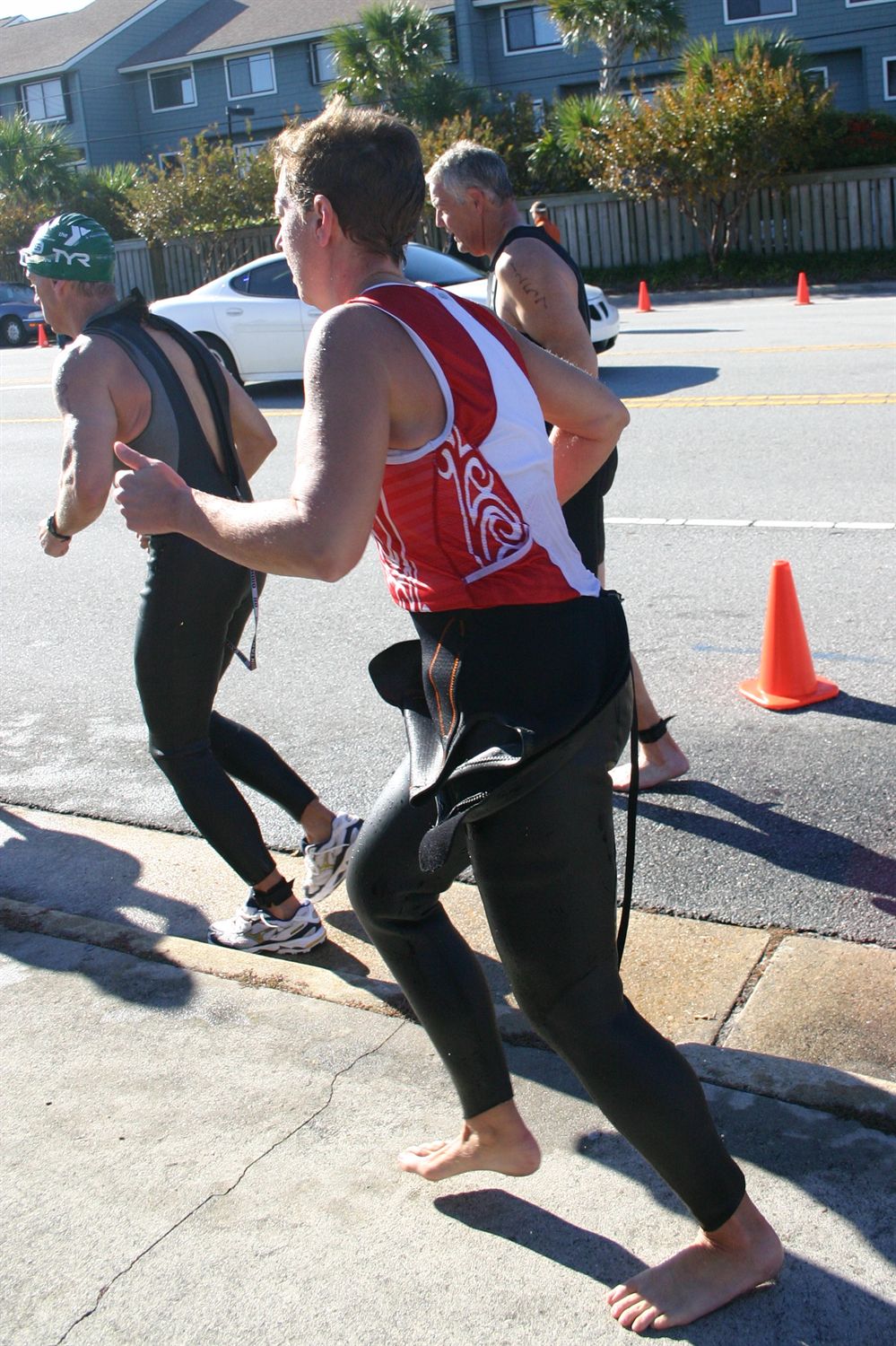 Comments: Cold hurting feet on the run to T1. Get out of the channel by climbing ladders. Run down a dock and then run about 400 yards to T1. The sidewalks were OK to run on but I did not like running on the blacktop one bit. What would you do differently?: Continue to improve my swim. ![]() Transition 1