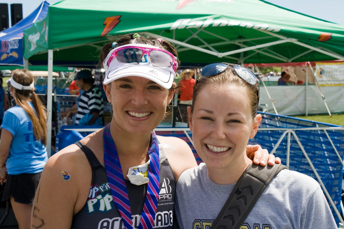 Warm down: After crossing the finish line I seen Chrissie Wellington handing out the finisher medals and was way excited to have her put my medal around my neck! She is awesome! Walked around for 30 minutes looking for my wife… Then PIP TAYLOR walked by me and I freaked out! I turned around and ran over to her to tell her how BIG of a fan I am of hers. She was super-nice and her husband handed me a PIP visor! Her Australian accent matched her physique. She is BEAUTIFUL! (So is my wife that happened to get a picture of them both!) What a weekend, race, and PR to boot!!! What limited your ability to perform faster: Mentally, I was holding back on the run. Maybe next year... Event comments: I had a great time! Last updated: 2010-01-24  12:00 AM