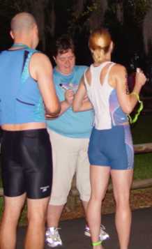 Comments: Start out of transition feeling pretty good. Decide to run to each aid station. About mile 4 I'm feeling the legs are feeling tired along with the rest of the old body but then at one of hte aid stations I down a gu shot, a banana, orange slice & water. A few minutes later I begin to feel much better, HS! this never happens to me on the run. Last Oct at the Fl Challenge HIM I began walking in mile 6 & never really recovered so I thought this time just get to mile 9 b4 I start walking. I kept grabbing water, gatorade, sponges, oranges gu shots and...this time I slammed coke at several stops. While my run time is relatively slow, I actually felt stronger as the run went on... The first 4 miles I got passed regularly albeit these were stronger athletes on their 2nd & 3rd laps but by mile 6 I was doing the passing. This is the first run where I've done a course with multiple redundant loops & I always thought that would be really difficult but it's actually easier from a mental perspective since it breaks the run into manageable shorter segments...if that makes any sense. Anyway, I spent the offseason working on my run & it yielded some results...I thought if there was any chance of a sub 6 hr it would be due to my bike but it turned out I got there from the run! So, I see my son on each loop who has befriended a lady whose husband is also racing. Turns out he & this lady had lunch together & just hung out watching the race! I get to the finishing chute & my hammy cramps severly...Uh Oh...I stop & curse loudly, the fans lining the chute keep cheering & coaxing me, I run a little further and boom, cramps again & now I am freaking out that I'm going down! IT SEEMED LIKE SEVERAL MINUTES BEFOER I GOT THROUGH THE FINFISHING CHUTE. I got across & headed to the medical tent. What would you do differently?: I am real pleased with the run. Some thoughts on the conditions; Many were not happy with the course & it was brutally hot, but what would one expect in central Florida in May? Bottom line, if you race in Florida, most likely you will have to contend with heat, this is just the fact. Dealing with the jeep trail was about attitude, you could easily let it get to you or just power through it & get through each lap.  Post race Warm down: Medical tent, can't sit down or my legs will cramp all over the place. Got some medical attetnion, Biofreeze, water & Gatorade. Headed over for a massage & finally went & found my son. What limited your ability to perform faster: Took 47 minutes off my HIM time from the FL Challenge although not the best comaprison since that race course was much more difficult. The training is progressing & the 4 week bike layoff probably was the biggest factor in not getting a better time. With that said, my goal was to beat 6 hours & after the Europe trip I didn't think it possible so, I am real pleased with the results. Event comments: My first IMNA event, as a marketing guy, I am impressed with this brand & its success. The popularity was evident from the throngs of athletes and the IM merchandise flying off the shelves at the expo store. Certainly a different feel from local tris or SommerSports in Clermont but I wouldn't say better, just different. Overall, it was all good & of course, meeting the BTers for dinner & seeing them on race day was a highlight for me! Last updated: 2005-12-29  12:00 AM |