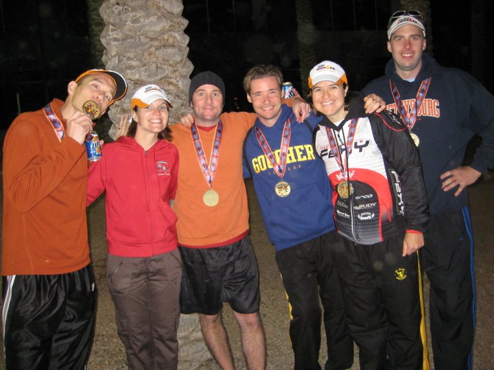 a group of us doing the race as well as family and friends all made the trek to tempe, az. it is so much fun racing with lots of friends and makes the whole experience so much more enjoyable. we were missing heidi from the race list since she took the year off for the birth of her son, but she was still there to share in the experience. she even made up 'team sharkie' shirts for everyone that were just awesome. we're all looking forward to having her back next year though.
