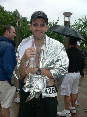 Warm down: Crossed the finished line and didn't see anyone. Got my blanket and medal and made my way back to the finish line to see if I could see any of the other BT'ers finish. After about 20 minutes I started to get the whole 'I need to sit NOW' feeling or that Gatorade I just had will be right back up. I made my way down the runner corral and got some pears. I sat on the curb and was feeling cold and sick. I had been running without my shirt on since mile 15 and the wind and rain...yea not doing well. I wated there about another 10-15 minutes and not seeing anyone I found someone with a cell phone and called my wife. They were about 100 yards away. She said I had no color. I was done. Cold/wet/sore but still had a smile on my face. We headed back to the car(about a mile to my office) and my legs were still cramping. I had jen loosen my laces. Awwwww much much better. Went for aother 1/2 mile walk about 7pm to keep the legs moving. What limited your ability to perform faster: Cramps! Mile 22 till the end! Need to invest in body glide! Ran the last 10 miles with no shirt since the rain had made my tech shirt heavy and the vaseline wasn't helping and there was alot of chaffing! Now I know how my wife felt breast feeding! Slight bit slower at start Better run gear Keep laces a bit looser Check up on Nutrition/hydration Keep Smiling! Event comments: Even with the rain I felt the support was great. Last updated: 2010-04-09 12:00 AM