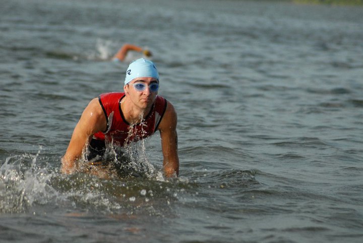 Comments: I let the wave rush into the water infront of me. I soon realized that it was going to be rough jumping into the water with the waves they were making. I got in and started going. The start I spent a lot of time swimming back and forth trying to get up where I needed to be. I got hit in the face by one person during this. I spotted Wes right ahead of me and made it a goal to stick with him for the swim. After the one spotting though I couldn't see him and guessed he got away. After the first rush I was able to sink into a good groove. When I saw somebody nearby I would make an extra effort to pass them. This is the first time I had the extra go in the swim so I felt really good. When I was coming through the second turn I noticed a swimmer ahead of me I wanted to pass. With the turn coming up I decided to sit back and wait for the turn to make a move since I would have to add a few meters on just to go around the corner around him. I got out of the water and my watch read 15:46! I felt great about this. I did get concerned I might have gone too hard on the swim though. What would you do differently?: Try to get out in front early. Now that I can start to feel comfortable in the swim I should try to get out in front of the pack. ![]() Transition 1