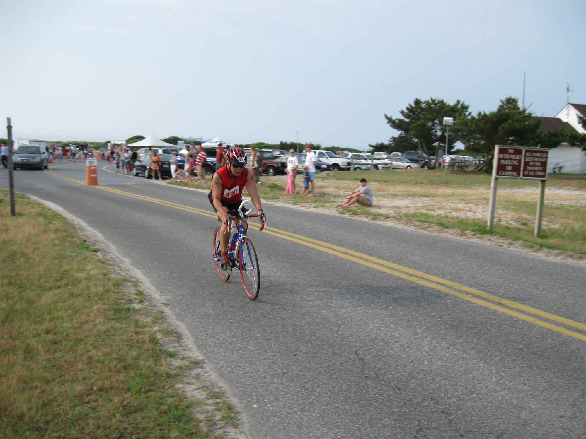 Warm down: Hugged my wife and son and ate alot fo the free food. What limited your ability to perform faster: My fear of overdoing the swim and panic, going to fast on the bike and crashing or running out of stamina on the run because of trying to go at my highest zone rate and not finishing my first tri. I did not want to DNF my very first tri and since I told myself I just wanted to finish, I did not have that overall warrior mentality that I usually do when I compete. The competition for me was to finish and finish within my comfort zone. Triahtlon is one tricky sport. I've seen individuals drop out a few miles before the finish line because of overdoing it, cramps, fainting from the heat etc...and I did not want to experience that at all. Event comments: This is one good race especially for beginners like me. If there was one flaw I saw it was the lack of lifeguards. There ought to be more out there. I think I spotted 3 on surf boards. There may have been more on shore. Anyway, I would recommend this to anyone who would like to experience a sprint triathlon with the swim segment in the ocean. It was very well organized and the individuals that ran it were friendly. Just finishing my first triathlon with my wife and 8 year old son was the best father's day ever! These two supported me all the way! They are the best part of this whole thing!!! I'd specially like to thank Steve "scamp72377" fellow BT member who was there to cheer us on and even took all of these great photos I am sharing here. Steve and I have not met but his presence there as a co-BT member was great! Thanks for the pictures Steve and hope I meet you soon! Last updated: 2010-04-30 12:00 AM
