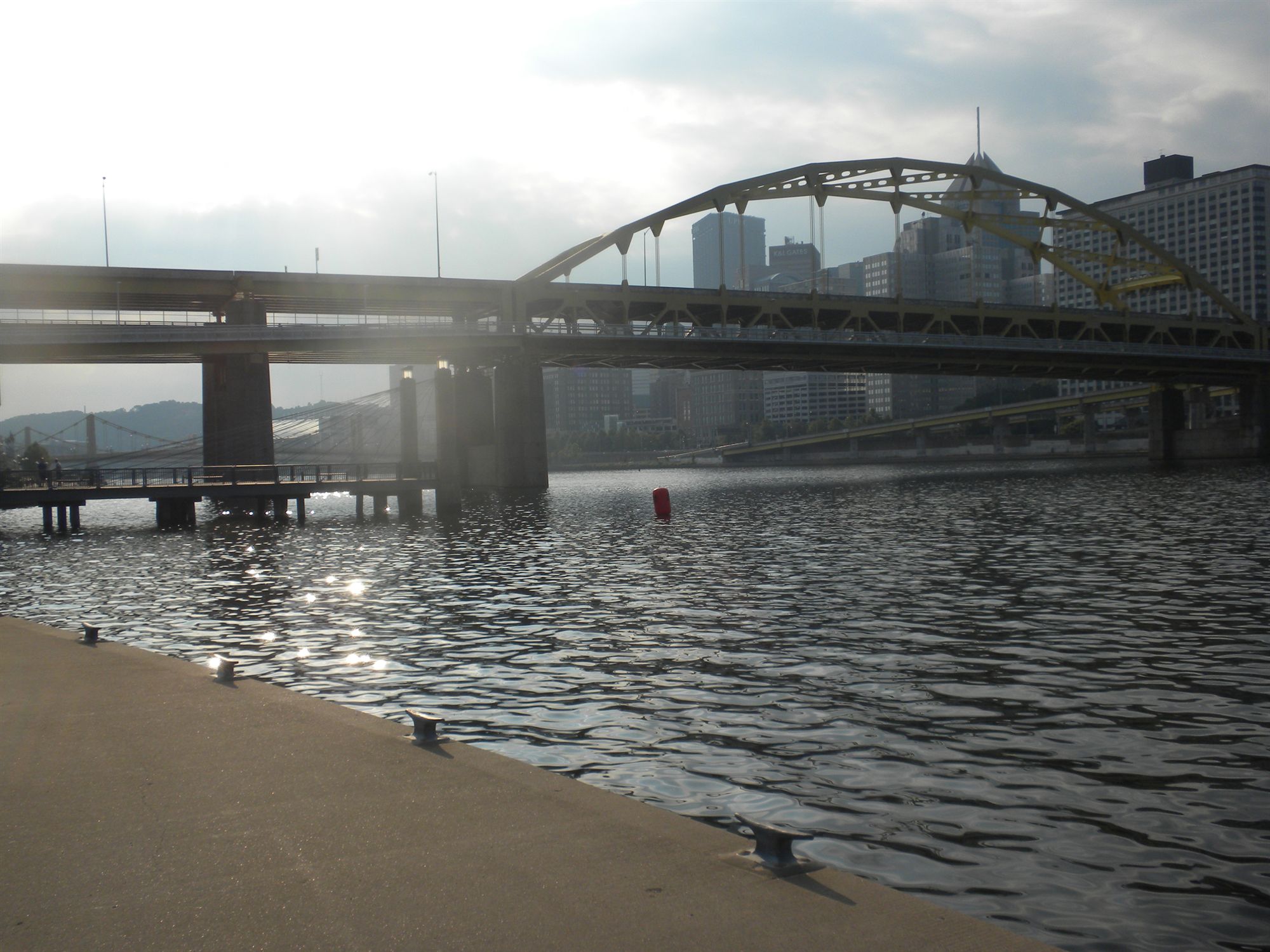 No swim warm-up :-( Ran around Heinz Field, added 2-3 strides to try to get my legs feeling better - it didn't help. Pretty much every part of my mind and body was saying "Why are we doing this?" Did some reverse lunges, planks and squats, then headed back to transition to make sure everything was set up.