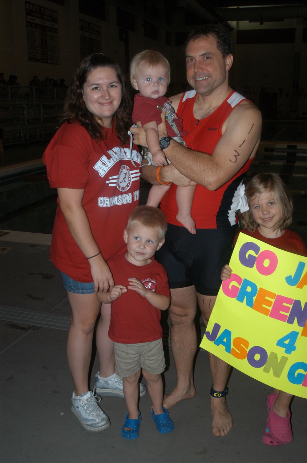 Warm down: Just lots of joy with my family! I downed a cold bottle of water and a half a banana and watched the runners come in. There was a dad encouraging his 13 year old son across the finish line running stride by stride with him that was really touching. We took a ton of pictures and I was very appreciative of my wife, mom and brother watching my kids 5, 3 & 10 months throughout the whole race so they could cheer me on. They all wore University of Alabama (Roll Tide!) t-shirts, had my race number pinned to their shirts and had a nice sign made for me. It was quite the event and made me feel very special. What limited your ability to perform faster: My right foot blistered. I need to change running shoes. I bought some Asics Foundation 8's that are very good for those with overpronation, but my overpronation does not seem to be severe enough for these shoes. Event comments: The volunteers for this race were fantastic and there was a great spirit in the air. I liked all the competitors I talked to. I think some races are probably more of an event production, but this one is very efficient and was fantastic for a first timer! Last updated: 2010-07-07 12:00 AM