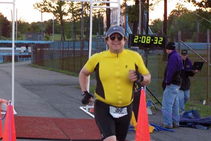 Warm down: Walked around, drank two bottles of water. Finished gatoraide. Packed bike and got Yoshi and the boys on the way. Met up with Marmadaddy and got hamburg, hotdog and tator salad. Peed and got on the rode to Kueka. What limited your ability to perform faster: Possible heart trouble (OK'ed before race by PCP). Not training hard d/t shin splints. More training in tight clipped pedals. Event comments: It was great that Yhoshi and the boys came. I got to see them almost every lap bike and run. Mike was at the bike at off track exit so I had a great cheering section. Yoshi was put off by the lead guys as they didn't care or aknowledge any cheering for them at all. They left before most athletes finished. When it get to be that intense to get a plaque or ribbon give it up and go back to work. Remember the fans and the volunteers. You can't be that wrapped up in the race to not enjoy it. If anything derails this sport it will be the lack of caring by the elite athletes for the fans and novice Tri'er. Don't get me wrong lots of the elite athletes care, but after volunteering it wasn't until 10-15 riders went by, the leaders, until one thanked us or aknowledge our cheering. Last updated: 2006-01-29 12:00 AM