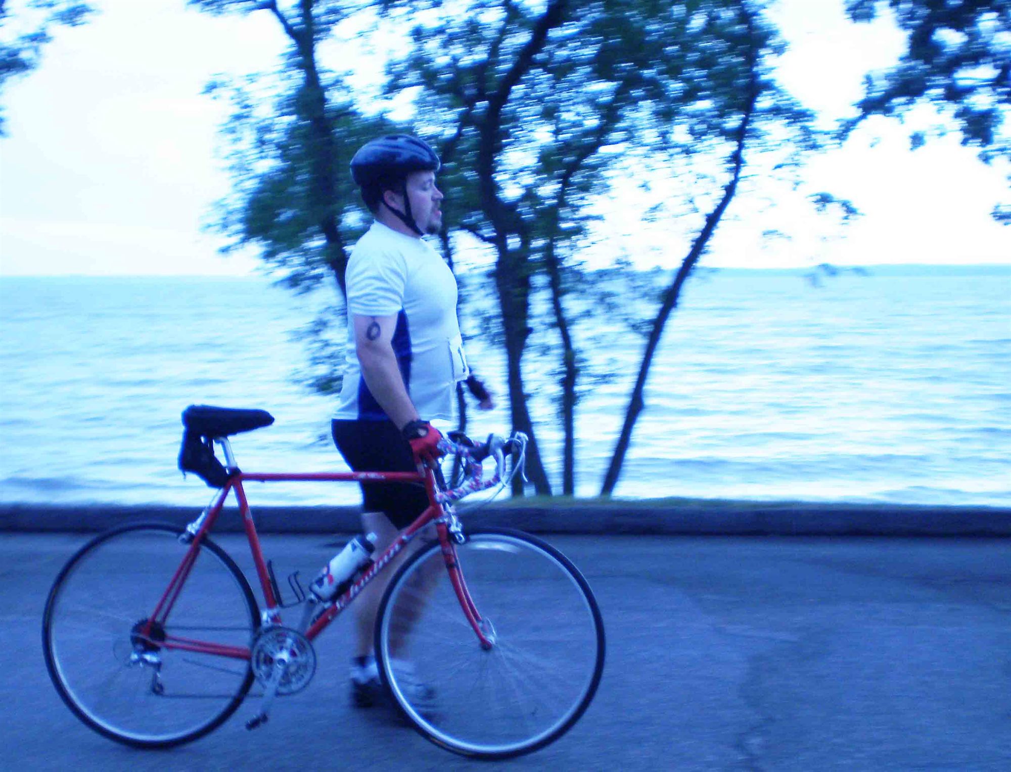Comments: This was a nice ride. When I got on the bike the first 3 miles were tough because my legs felt like they were on fire. After that third mile the sensation went away and I was good for the rest of the ride. It was really fun to ride along the lake for the first few miles and then again as you were coming home with the out and back format. The half-way point was right at the end of the big climb. I think the whole climb was about a mile or more at a gradual ascent. It wasn't steep it just kept going. I only stood twice up the hill which was nice because it saved my legs but I did have to get into my higher gears on the big climb. What would you do differently?: Loose some more weight. I think if I was 10 or 20 pounds lighter the entire ride would feel differently. Also, I now know my bike is too big for me. I have had it for a long time but did not really notice until I started training for this triathlon. The top tube and headstock are just about two inches too long. If it were that bit shorter, I think the bike would ride better and I would have more power in the strokes. ![]() Transition 2