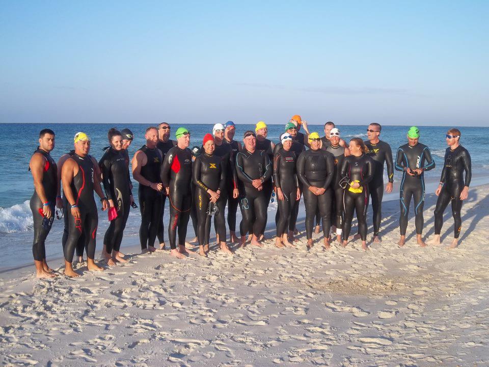 Arrived Wednesday night before the race after an 11 hour drive. First thing Thursday morning, we met up with a huge group of BTers for a practice swim. I was thankful they were there because we got a much better practice swim in than Pete and I would have alone. JELLYFISH! Tons of them! In the race meeting, we were told they are called Pink Meanies.