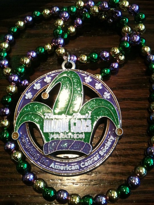 Warm down: Sit on my ass and drink a free beer with my shoes off! OMG my feet were killin' me! Did a bit of stretching too. What limited your ability to perform faster: My achy feet and knees. Ironman training limited the amount of running I should have done for a marathon. I got the long runs in, but very few runs during the week. I think more are necessary for better performance. Event comments: The course was awesome - nice and flat. Although, sometimes the up and downhills can give your legs a much needed break. I can't believe I just said I wished for some hills lol The costumes were very entertaining, the course scenery was awesome. This was a great way to get a tour of New Orleans! The volunteers were good and very upbeat. Fabulous race actually! Even if it was a hell of a long ways! Last updated: 2010-11-11 12:00 AM