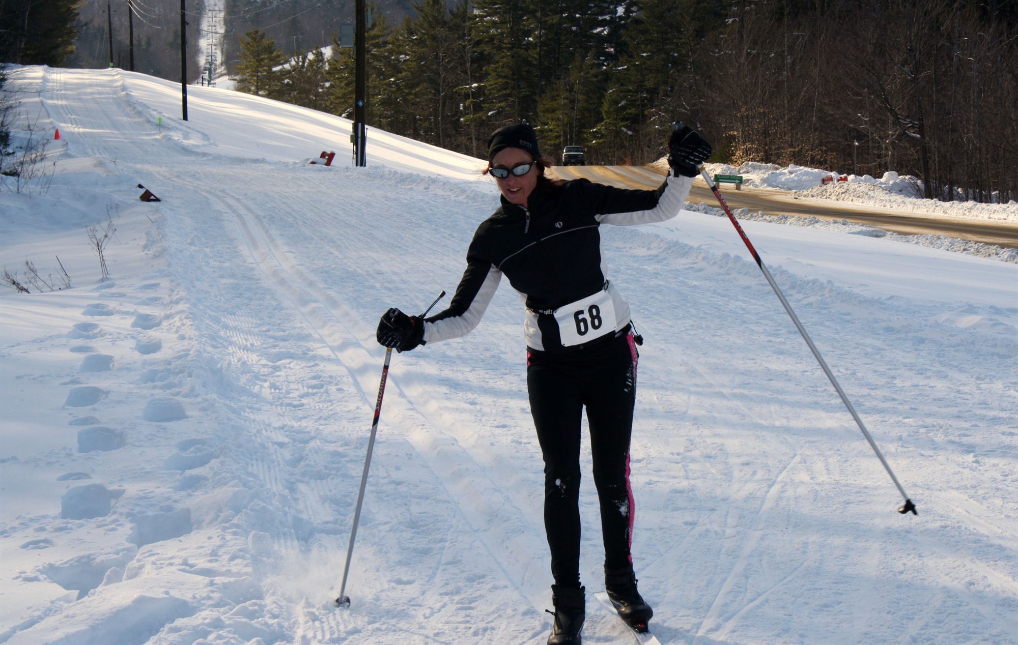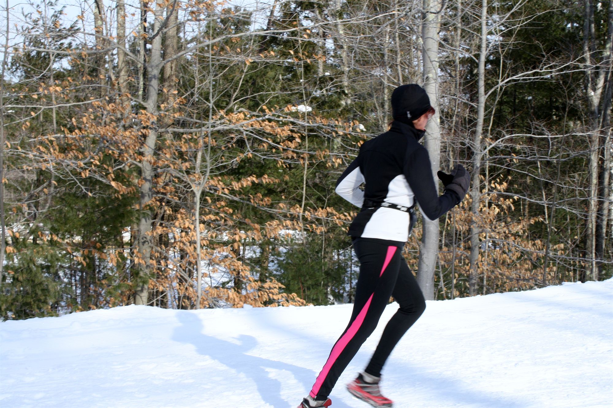 Comments: This is from the BIKE to the XC SKI I was tired and cold coming into T2. My coordination was a little off and I knocked the skis over trying to re-rack the bike. Oh well they were going on the ground anyway! I took the extra time to take the toe warmers out of my sneakers and put them into the XC Ski boots. Well worth the extra effort! I finally took my first drink here! I realized how thirsty I was so I took the hydration belt with me. What would you do differently?: not sure! Just be better trained to do all this in the snow so I may not be so tired next time coming into T2 ![]() Run