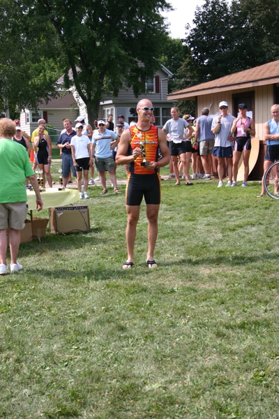 Comments: I was feelin really good after the bike and took off. Almost right out of the transition I passed the people, except for maybe 1, that passed me on the bike. After that, nobody passed me on the run. I was maintaining about a 6:20 pace until mi 4 or so when my legs started to turn to rubber and my mouth was getting dry. I kept pushing and until the near end, where I gave it a kick to finish. What would you do differently?: Drink more on the run. ![]() Post race