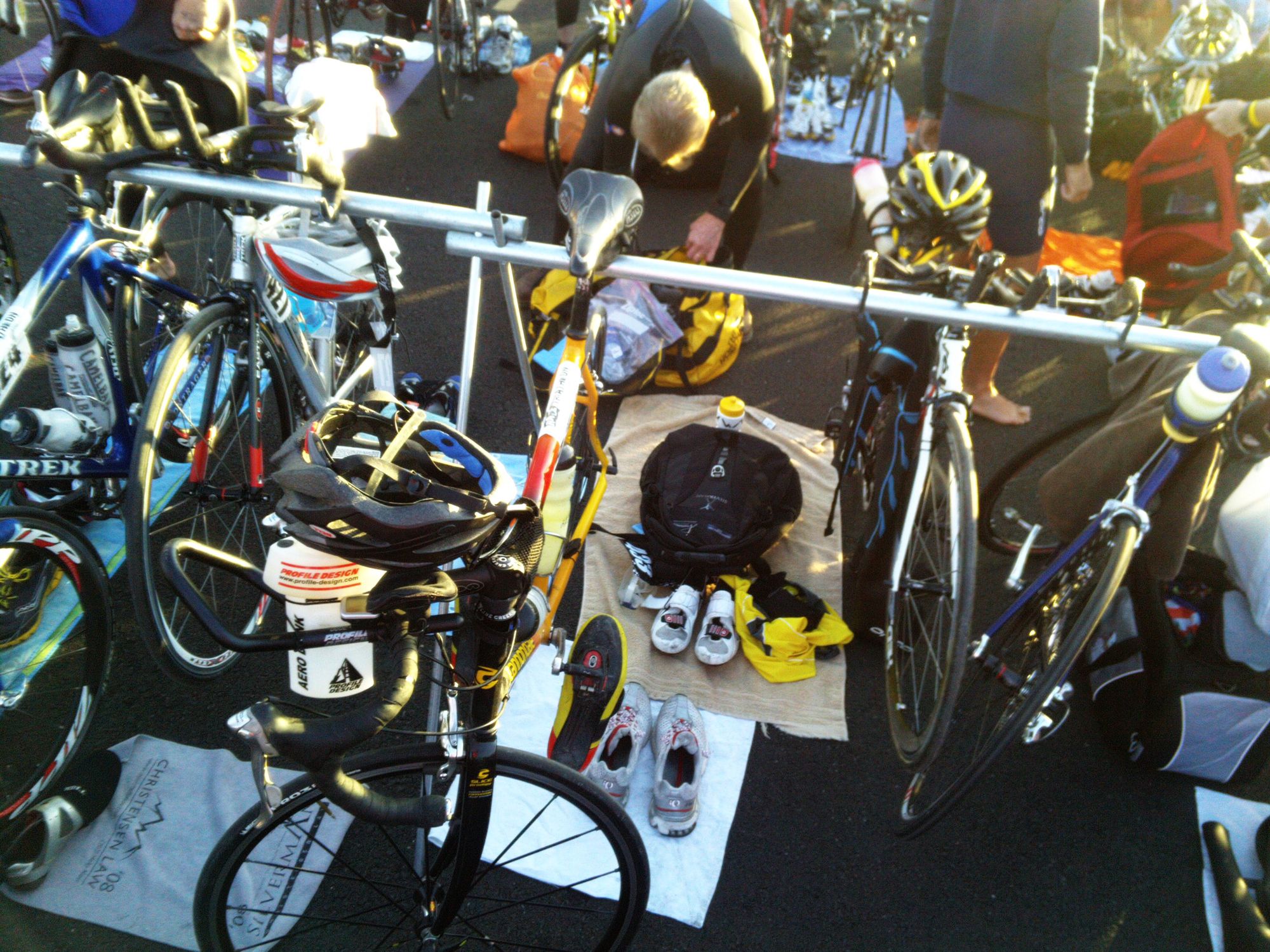 I had a good steak about 5pm and some rice in the morning I had a fruit smoothie when I woke up around 5 am and a banana a half hour or so before the race. Go back and change into my tri stuff.