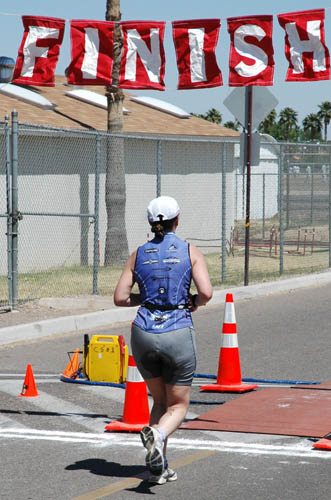 Warm down: After I got some water I ate a few oranges and some bananas. Got a little bit of bagel down me as well. I picked up my bike stuff, and snuck into the locker rooms to get a shower. It felt so good! I was catching a flight out of Phoenix at 4:22pm, so this was the only chance I had to shower. After I got cleaned up and got my stuff put away, we hit a Subway for some sandwiches. Felt a bit better after eating and getting a soda. What limited your ability to perform faster: Definitely running. I think I'm going to focus on that over the next few weeks. Definitely the heat, and I'm going to get some hot weather workouts in. I think the Tempe Oly will probably start sooner in the day than this race did. Event comments: These people really need to get started earlier in the day during this time of year. I think they waited until all of the kids were off of the course before starting the du, then they started the tri. They could have a few people running the show to get things going sooner. Firecracker tri in Tucson has a kids tri, and gets done way sooner than this race did. These folks could learn a thing or two from them. I had to have my bike racked by 6:30am, and didn't even start until 9:30am. 3 hours of wasted time. Transition area could have been laid out better. Swimmers and bikers were sharing the same entry/exit, and there were a few collisions. This race did have timing mats, but no mat out on the bike course to make sure everyone did 3 laps. They said they used to mark people on the bike, but they didn't this time. Zac saw quite a few people cheat laps by only doing 1 or 2 laps. So the race times are going to be jacked up. Cheaters like that really get me steamed. Do 3 laps like we were told over and over and OVER again. It's not like they didn't know. Anyways, they should mark people on the bike laps or just have a timing mat out there on the course or something to make sure people aren't cutting laps. Last updated: 2006-04-17 12:00 AM
