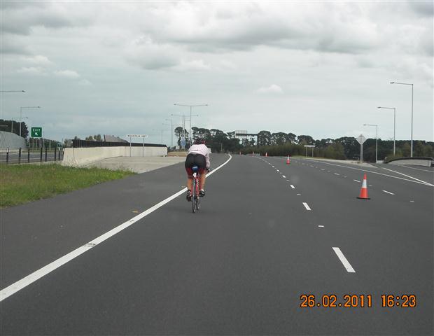 Finally ready to go. I look like a bag lady all bundled up, which is just as well as St. Kilda is a pretty crappy neighborhood at night and I saw 7 hookers on my way to the shuttles (that damn 45km back to start/transition again!).