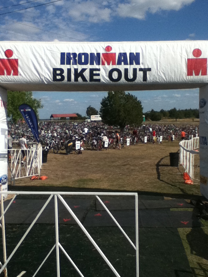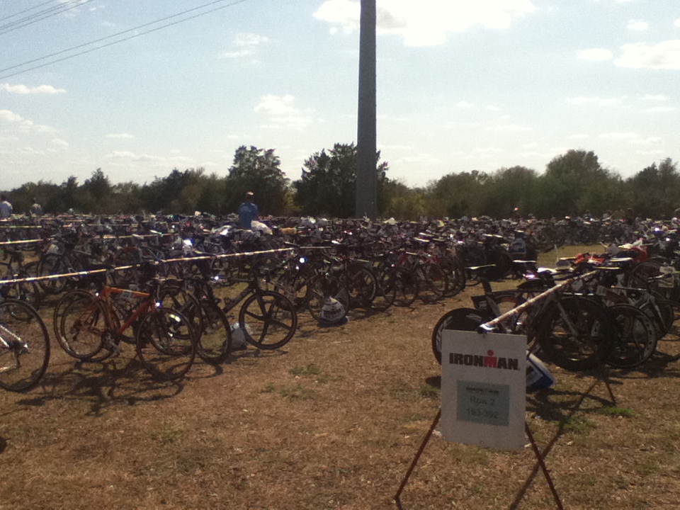 Comments: Seems like I could almost cut and paste most other RR's about the bike. The first half I felt great, then around mile 30 the wind developed and kicked my rear. I was averaging 19ish on the front half of the bike course, then fell apart on the back half. I just couldn't pedal any harder into that wind, then my shoulders/back started aching and I couldn't get back down into the aero position. The race course itself probably wouldn't be so bad if the roads were in better condition. The aid stations seemed to be at good intervals and the people working them did a good job. What would you do differently?: I chose to rent a bike for this race so the fit wasn't perfect. But I'm not sure it was poor bike fit that was my doom. Buy a tri bike and get strong on it, then either do races closer to home or fork over the money to bring it along. ![]() Transition 2