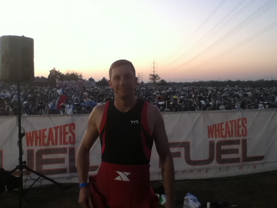 Woke at 4:15, drank two Ensures and ate a Clif bar. Drove over to the arena and waited in traffic, seems like all I did this weekend was sit in traffic and stand in lines. I'm getting good at it. Got all my transition stuff situated and headed down to the water for the start.