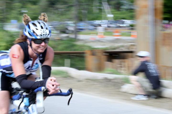 Comments: AHHHHHH! The bike....my favorite! My stategy is to usually only drink water for the 1st 20-30 minutes as I settle into my race pace. Today was no different. The course started out with a nice gradual climb out of town on nice new pavement. However before I even got out of town, as I was shifting into an easier gear, I dropped the chain.....DANG! Stopped and quickly put it back on. GO GO GO!... Another couple of miles and I reached into my 2nd bento box for chap stick and my heart sank when I heard it hit the pavement. Do I just keep going and suffer thru with chap lips or do I stop? I opted to stop. After all this wasn't even 10 miles into a 56 mile ride. After these intial problems, the rest of the ride was smooooth sailing! Oh yeah....except for the food issues. Tried to eat banana and orange slices - no go! Tried to eat FRS chews, no go! SO I just settled into the fact that all the nutrition I was gonna have was in my bottles that had UR DRIVEN in it - Short, medium and long chain carbs with protein and electrolytes mixed with pineapple juice. And it was all I needed. At times my energy would wane and someone would pass me, but I used that as a motivator. I hung back to 3 bike lengths that were required for a bit, then I surged and passed them and never saw them again. I was actually feeling strong up until the last 8 miles where #195 passed me and I just couldn't keep up! But that initial hill outta town turned into a nice downhill back home to the T-zone! Whoooooosh! What would you do differently?: Same as before.....eat a lighter breakfast. Maybe ride hills more - they make one faster on the flats! ![]() Transition 2
