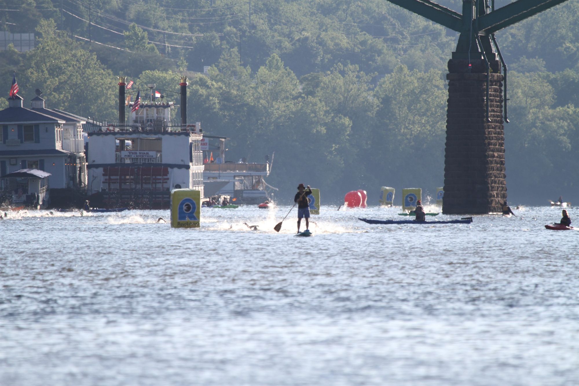 Swim was point to point so we had to walk about a mile to the start. Then I stood in line for the porta potties. Had one of my teammate behind me in line so I had someone to chat with. Fortunately the Olympic waves were last so I had plenty of time. After that I got my wetsuit fully on, donned my google and cap and waited till they let our wave down to the dock. We have 10 min between the first Olympic wave an ours (only 5 for the wave after us), so I jumped in and swam a few back and forths to get some heat going and then treaded water till the start.