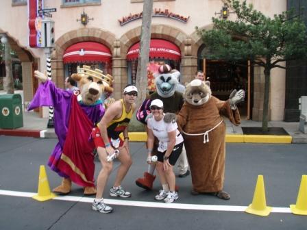 Warm down: Got our Mickey and Goofy medals (YEAH!) and bought some Goofy merchandise with pride. Walked way out of the way to catch the hotel shuttle and then back to the correct spot on feet that felt like they were going to explode. Took a very short ice bath at the hotel and threw down some ibuprofen. Gazed in awe at three of the most beautiful finisher's medals I have ever seen. Smooched Rob and told him how proud I was of him for finishing. What limited your ability to perform faster: Doing a half marathon the day before, lack of long distance run training, running out of endurolytes too early, and needing to lose about 15 pounds. Event comments: I would recommend this race to anyone, especially a first time marathoner. The miles go by a lot faster when there are lots of things to see around you. Last updated: 2006-05-15 12:00 AM