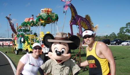 Comments: I think this was the best race I have seen or participated in. The scenery and areas you get to run through are really incredible and the Disney staff and spectators really seem to get in to the race. It was such a blast to see the monorail stop so everyone could watch and wave at us and to have Disney staff all along the course cheering and high-fiveing us. And other than one aid station being out of power-aid and one being totally out of everything, I was very impressed with how many aid stations there were and the amount of supplies they provided. There was lots of water and power-aid as well as BioFreeze, bananas, oranges, sporadic candy and gels. This was such a hard day, despite the beautiful surroundings. I went on this trip with Disney on the brain thinking about only the fun aspect of being at Disney. I guess that was a good thing as ignorance can be bliss. Had I realized the physical and mental challenge these two days would present I don't know that I would have looked forward to the trip as much. I honestly think this experience was as difficult to get through as Ironman. And I am just as sore in the days following this race as I was after IMFL. Before the race Rob told me something he had read on the flight up in Runner's Magazine. It was the article about Lance doing the NY Marathon and about how he had so much pain in his shins he wanted to quit and that his pacers had to keep motivating him to keep going. Later in the day, that story would stick with me and help keep me going. It reminded me that everyone has pain and wants to quit at some point - even the great Lance Armstrong. Starting this run I had to keep pushing negative thoughts out of my head. I knew it was going to be rough based on the pain in my ankles, shins, knees, and soreness in my quads. But I figured if I could get through IM I could do this, too. And I thought back to the Lance story. He didn't win NY. But he didn't quit. And that was his victory. And so we got started. With a kiss and a smile - just like we start every race. After mile 2 I was still hurting a bit but managing the pain by going at a reasonable pace and walking about 2 minutes after each aid station. The miles seemed to tick off quickly and that was good. Before I knew it we were at mile 5. When we got to about mile 9 I was hurting pretty bad. My right ankle hurt so bad the day prior we had to go to a drugstore and get an ankle wrap. Thank goodness we did that, as I don't think I would have made it through the marathon without it. I had started the run as with the half - using my hand held water bottle with 1 scoop heed and 1 endurolyte serving. After that was gone, I refilled with water at the aid stations and was taking in about the full bottle per hour (maybe 18 oz). I also took in power-aid about once an hour as well as an endurolyte pill until they ran out after about 4 hours. I tried to take a gel every hour and did so up until about 5 1/2 hours when I couldn't stomach anymore. From mile 9 on I had to work very hard to stay positive due to discomfort in my legs. At some point we discovered the miracle of Bio Freeze and starting slathering it on like there was no tomorrow. That stuff is amazing. Rob was also hurting a bit - his ankle was sore and his hip was hurting as well. So we were quite a pair! But we did a good job of motivating each other and making each other laugh from time to time. We are so lucky to have each other to train and race with. I cannot imagine getting through the pain of this day alone without his support and encouragement. At mile 18 or so I knew at some point I probably would not be able to run anymore. I hoped and prayed that time would come at some point after mile 20. Thankfully it did. But miles 18 on were so rough I really think they rank up there with Ironman. I just had to concentrate on one mile at a time and keep telling myself pain is temporary and the Goofy Medal is forever! When we got to mile 23 we knew we were going to make the finish in less than the 7 hour cutoff to get the Goofy medal even if we walked the last 3.2 miles. But I wanted to keep running to make sure we would finish in time. We ran until mile 24 and then walked a good bit of the next mile and the last one. We ran the last 2/10 of a mile or so because we were so happy to be finished but I'm sure it was not a pretty sight. I probably looked like a drunkard or something staggering across the finish line. But I did manage to raise my arms and put a big smile on my face. What a great feeling to be finished. What would you do differently?: Longer run training and lose weight. ![]() Post race