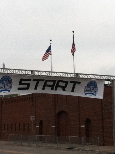 Two years ago when I ran this I made the mistake of showing up an hour before the race start and I spent most of that time driving around looking for a parking spot and finally had to pay $10 for a lot spot. This year I arrived two hours early and had my choice of spots. I went with a free curb side spot a mere five blocks from the start line. After I picked up my packet and walked it back to my car, secured my race number to my race belt and headed back to the start area all of the curb side parking were full and people where having to pay for lot spaces.