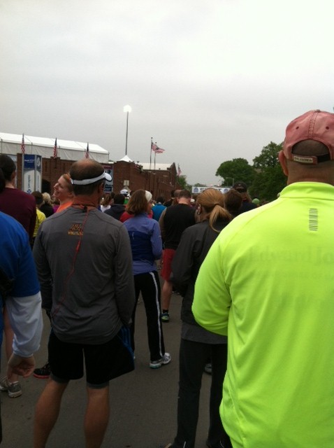 Spent most of my time in the Drake Stadium since it was cold, overcast, and windy. I walked around the track some and spent more time stretching. With 30 minutes to race start it was a last stop to the bathrooms and headed outside.