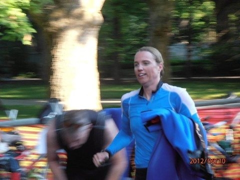 Warm down: Quick swim, jump in the car and 3 1/2 hr drive home. Hobbling about on toes with blisters on the blisters! What limited your ability to perform faster: Stomach! Event comments: Awesome Race. Amazing volunteers - thanks so much!!!!! Packet pickup was a bit of a cluster, but everything else was so organized and just amazing. Loved the area. First thought after the race was that my body (stomach/GI) obviously just can't handle this kind of event - will need to stick to shorter races. But a few hours into the drive home I was thinking about all the things I could do to make this a better race next year. What a sport - addictive! Love it! Last updated: 2012-04-30 12:00 AM
