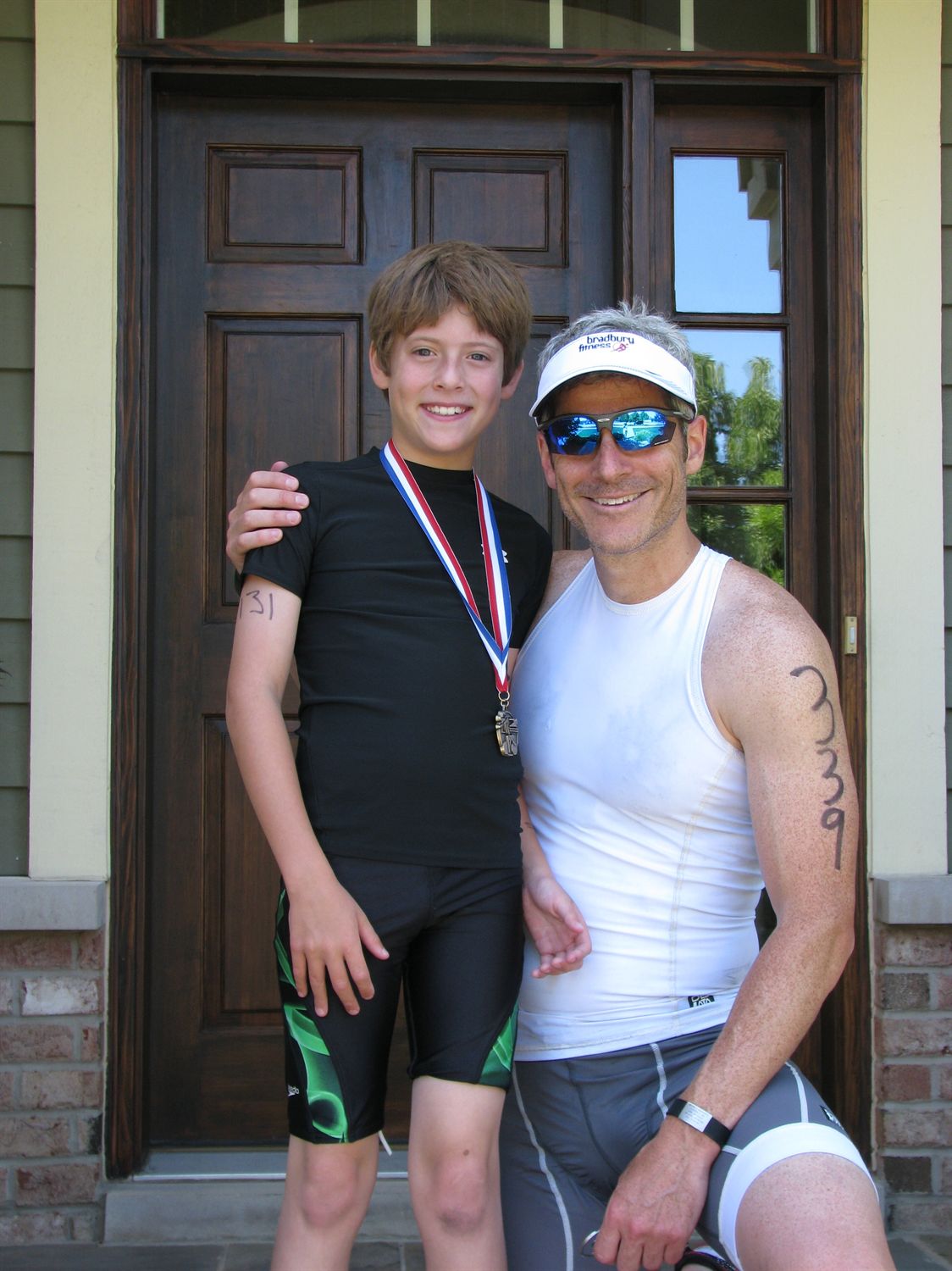 Warm down: Drank, ate, walked around. I also laughed at guy in 55-59 age group who so anxious to see the preliminary race results that he slipped to the front of the crowd from the side and then basically blocked half of the group from seeing the list while he found his name and then scanned up the rest of the list for the others in his AG. I didn't want to get negative after a great race, so just rolled my eyes with the others who were similarly non-plussed by this guy . . . whoever you are, you acted like a child. Rant over. Sorry. On a more positive note. I came home and was able to celebrate with my 10-year-old, who finished his own tri this morning too. I slipped up planning races for both of us on the same morning, but the report from my wife was that he was a champ!! What limited your ability to perform faster: Nothing really. I stuck to my plan and it turned out great. My plan admittedly was oriented around protecting myself to set up a strong, complete run, so maybe I was a little coservative and could have pushed a bit more on the bike and the first lap of the run. Dialing my pace in to that extent, though, is icing on the cake and will come with more experience at this distance. I'm really happy with the result today. Event comments: Well-organized. If the calendar works out, I'd like to make this a regular event. Last updated: 2012-06-14 12:00 AM
