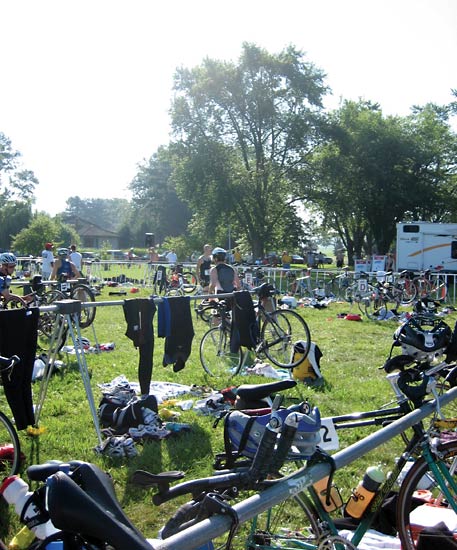 Finally got there, got checked in, numbers, transition set up, etc. Ran into Buckeye66 and Stupidnickname in line for the Port-a-Loo's. Chewed the fat for a bit, then decided to go down to the water and swim...it was really warm!