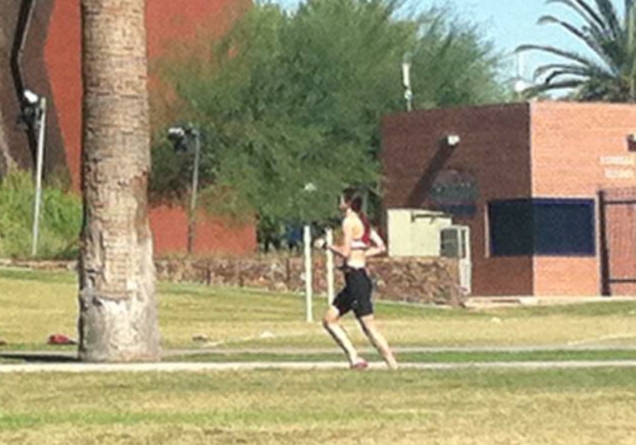Comments: I headed out on the run, settling in to what I felt was a good sprint tri pace. I have made the mistakes of starting too easy and too hard. This is my 8th sprint since I started racing last year, and I feel like I'm getting the hang of it. I took a the water cup that was offered at the start of the run course, Shortly after thereafter, I saw Team M and gave them a little cheer. I took another cup as I reached the mall area (runners go by this station twice, so there are three opportunities to drink). Sip, dump, toss... Team M's sister and mom were on the side of the course and cheered for me. She even got a few pictures (including the one attached to this report). Based on the picture, it looks like I did a good job of running tall. I kept trying to focus on staying light on my feet and putting forth a good effort. I was passing a fair number of people, but I kept looking ahead for Elaine and Chrissy. Two men passed me on the course. There was one guy who sped up as I pulled up along side, but after a half mile, he dropped back. I saw Elaine with about a half mile to go and was able to pull ahead. As I neared the finish line, people were cheering. I didn't recognize anyone, so I didn't know if they were just cheering because they were spirited, or if Elaine was on my tail and they were cheering for her. I didn't look back and summoned the best kick I could. I had that pukey feeling that we all know and love when it was over, but it didn't last too long. Elaine finished 7 seconds later. Chrissy had finished 49 seconds before me. Team M finished about 20 minutes later. What would you do differently?: I am really happy with the run. Nothing comes to mind other than figuring out how to not chafe. I got a little hotspot just under my ankle bone on the right foot. I had Body Glided it before the swim. The weather wasn't an issue.  Post race Warm down: A little walking, a little talking. I got some orange slices and cut-up banana from the refreshment table. I found out that Elaine had swum an extra 50, which certainly counts for more than 7 seconds. She and Chrissy are in one of the whippersnapper age groups, so she's not my direct competition. Still, it's fun to compete against people that you know of similar ability, and I expect there will be more close races next year. I had to leave before everything was tabulated for the awards ceremony, but I ended up getting 2nd in my age group (and a Tinfoilman trophy) and I missed out on the Overall Female Series award (combined time of all three Tucson Tri races) by 7 seconds. To Chrissy :) On a personal note, my goal for this race was to finish in the 1:13s and I just made it. So far I have improved my time every time I have raced in this series, so I will call the season a success. A lot of my friends set course PRs as well, so it was a good day. What limited your ability to perform faster: Getting flustered in the swim, bike handling, and according to one friend not having "a modern bike." Event comments: This is a well-run sprint series. The course isn't exciting, but you can go fast and hard, which makes it fun. Last updated: 2012-08-09  12:00 AM |