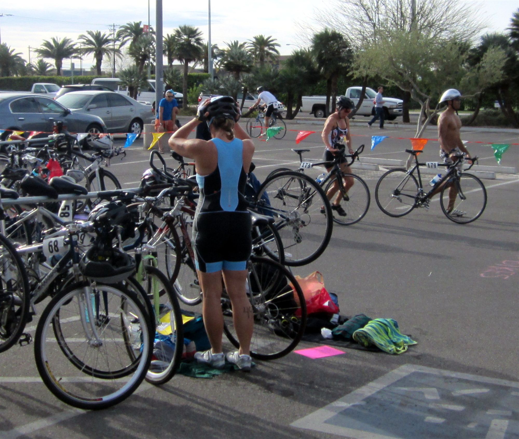 Comments: Had some trouble with breathing - used inhaler before swim, but still felt tight. Did every other lap in breastroke. My husband commented that I'd gain on my lane partner in freestyle, then lose momentum at breaststroke. Was afraid I'd get winded. Knesio tape fell off in warm-up pool. What would you do differently?: Freestyle only in future with maybe a few strokes to catch breath in breast stroke. ![]() Transition 1