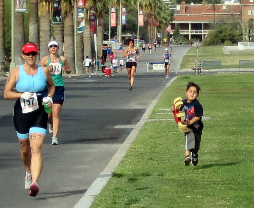 Comments: I think I had to move someones bike out the way to get mine in it's spot. Shoes were easy to get on - put on hat, race belt and grabbed a Gu packet to slip in little side pocket on my trisuit. Grabbed a large water bottle to start out on my run with. What would you do differently?: Take feet out of shoes before dismount. Don't wear gloves for bike. Stick Gu in bra. Don't take water bottle - just get water on way out for run. ![]() Run