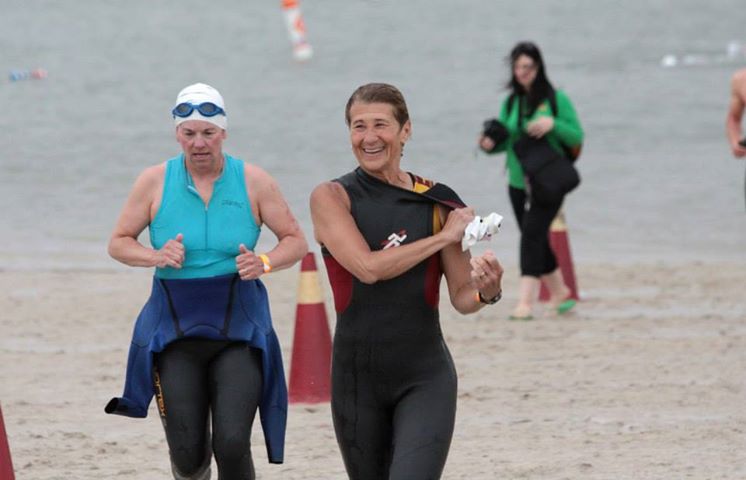 Comments: I felt totally comfortable in the swim. Breathing was controlled and sighting was pretty spot on - not lifting up too many times. I was in a pack of people weaving in and out of each other for the entire 2 loops which never happens - I'm usually left behind. I felt confident being able to stick with people although I couldn't find anyone to draft off. Got popped in the nose at one point and I just laughed. Based on my time last year I figured I'd be out in 32 minutes. Was disappointed when I saw 33 on the watch. What would you do differently?: This was a run in from the beach and I don't know how to properly do that since this is the only race that has that type of entry. Need to read up/practice that for next year. I also question whether I should wear a watch any more. Having not met my time goal made me a little grumpy for the rest of the race. You'd think it would motivate me to go faster but it only caused me to be unhappy and I didn't like that feeling with so much of the race left. ![]() Transition 1