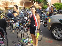 Warm down: As soon as I finished, I began to notice that I was really tired, but never felt it during the race. I received a wonderful massage that brought me back to life. Then a refreshing dip in the pool and a great pizza dinner with Felix's family and my first beers in about six months! What limited your ability to perform faster: Swim: Need to improve my speed. I know that I can cover the distance and swim in open water. Bike: I'm getting better. More kilometers on the road bike. Run: I had a good run, but can always improve. I realized that the persons who one usually sees at the head of the pack are human and not entirely out of reach. I never felt down because it was my first time. I learned to race and am coming back next year. Event comments: This is the sixth edition of this race. And it is probably up to international standards. I highly recommend it. People from Argentina, the US and Germany have raced here before. I would like to thank Felix, who is my soon to be husband and trainer because he makes me get up in the morning to train, is patient with me and has made this journey the most exciting race ever. This is not a hobby for us anymore; it is a lifestyle. This achievement is his as much as mine. By being consistent, anything is possible. Last updated: 2006-06-13 12:00 AM