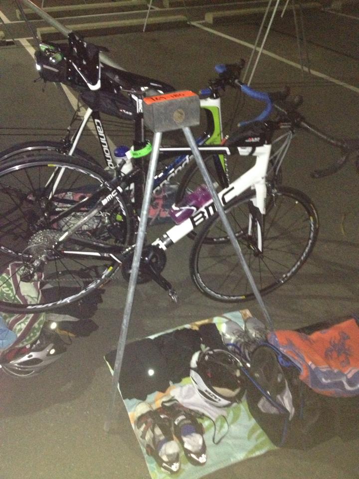 Got there pretty early as the volunteers were still setting up some stuff. I noticed the numbers on the racks and found my area. I racked my bike on the end and set up my towel and laid everything out.